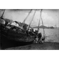 Vue sur le port de Kilindini et sur une canonnière allemande.