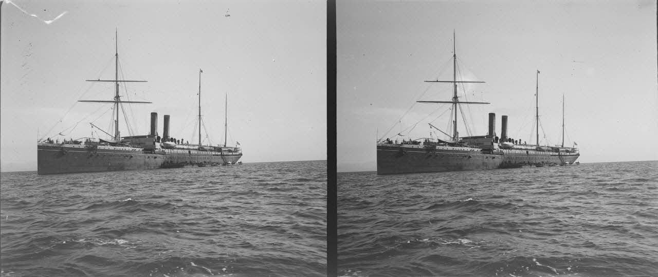 (Septembre 1908) Retour en France. 1454. En rade de Tourane. Aviso "la Manche".