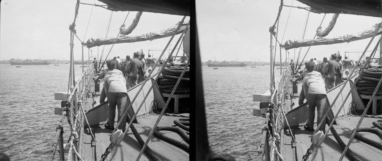 (Septembre 1908) Retour en France. 1454. En rade de Tourane. Aviso "la Manche".