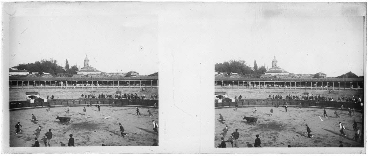 Cet ensemble de plaques de verre stéréoscopiques, à caractère familial et touristique, porte sur les activités de membres de la famille du général Albert d'Amade (1856-1941) : manifestation tauromachique à Fontarabie (pays basque espagnol), scènes maritimes, portraits de famille, bains de mer à Biarritz, etc. Etant donné la rareté des informations documentaires associées à ces photographies, leur localisation précise n'a pu être établie pour la plupart d'entre elles.