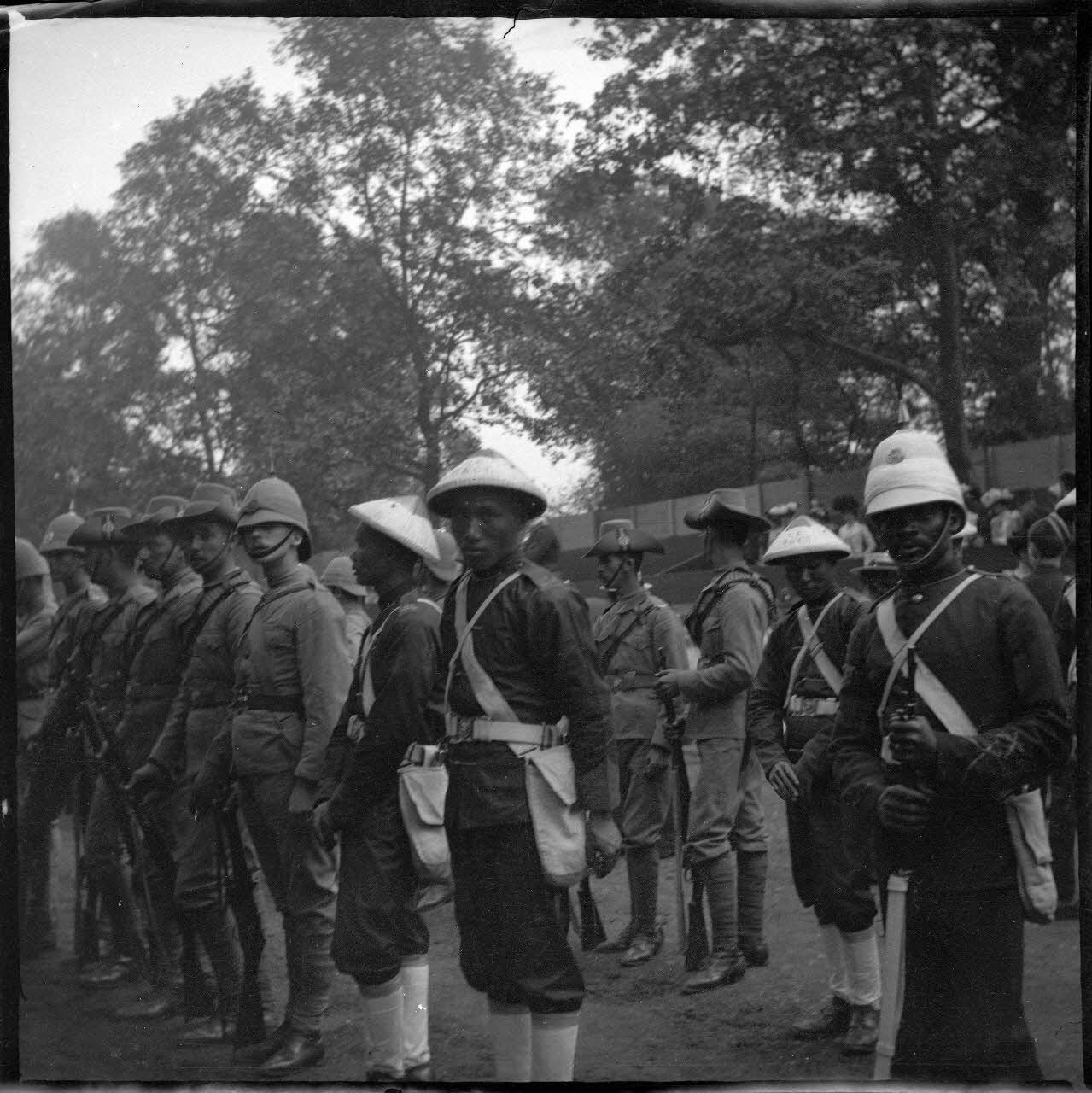 le colonel Albert d'Amade (1856-1941) est nommé attaché militaire au quartier général de l'armée anglaise pendant la guerre du Transvaal entre le 28 octobre 1899 et le 2 août 1900. A partir du 10 janvier 1901, il est nommé attaché militaire à l'ambassade de la République française en Angleterre puis est relevé de ses fonctions sur sa demande le 7 décembre 1904. Dans une lettre de son dossier individuel conservé au Service historique de la défense (SHD - Vincennes) sous la cote GR 9 YD 473 en date du 4 décembre 1919, on relève qu'il " […] a fourni de nombreux rapports sur les tendances et sur l'évolution des Forces Britanniques, sur les Ressources de l'Angleterre, le rendement à attendre de son esprit et de ses méthodes. " Au cours de sa mission, le colonel d'Amade photographie le retour de Lord Kitchener à Londres pendant les fêtes du couronnement du roi Edouard VII le 9 août 1902.