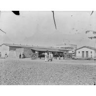 Camp de tirailleurs sénégalais se rendant dans le tell (colline artificielle formée par des ruines).…