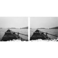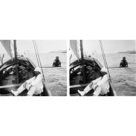 Retour du lieutenant Edgard Imbert en sampan de mer sur le navire La Manche en rade à Đà Nẵng…