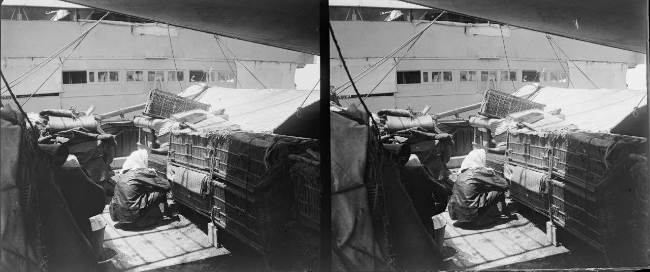 (Septembre 1908) Retour en France. 1454. En rade de Tourane. Aviso "la Manche".