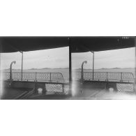 Vue du pont du navire qui amène Jules Imbert en Algérie. Les passagers vaquent à leurs occupations.