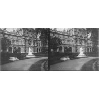Portrait de Benjamin Nouet sur un piédestal dans le jardin des Tuileries.