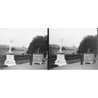 Portrait de Jules Imbert observant une statue au jardin des Tuileries.