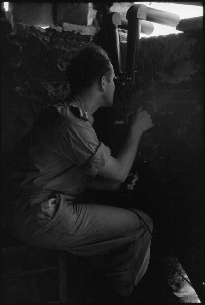 Un sous-officier parachutiste étudie le front depuis son poste d'observation.