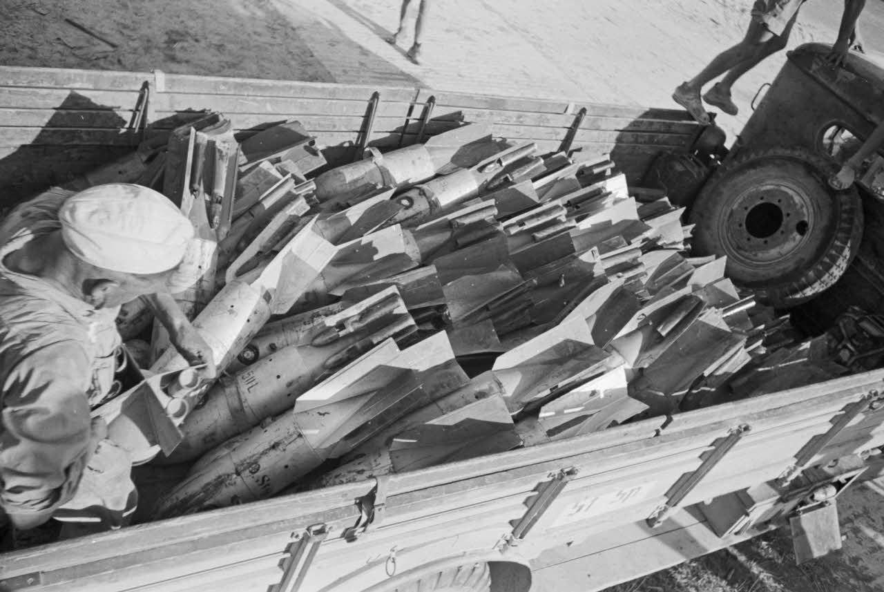 Dans le port de Marsa Matruh, le déchargement du ravitaillement de l'Axe par des prisonniers anglais et néo-zélandais.