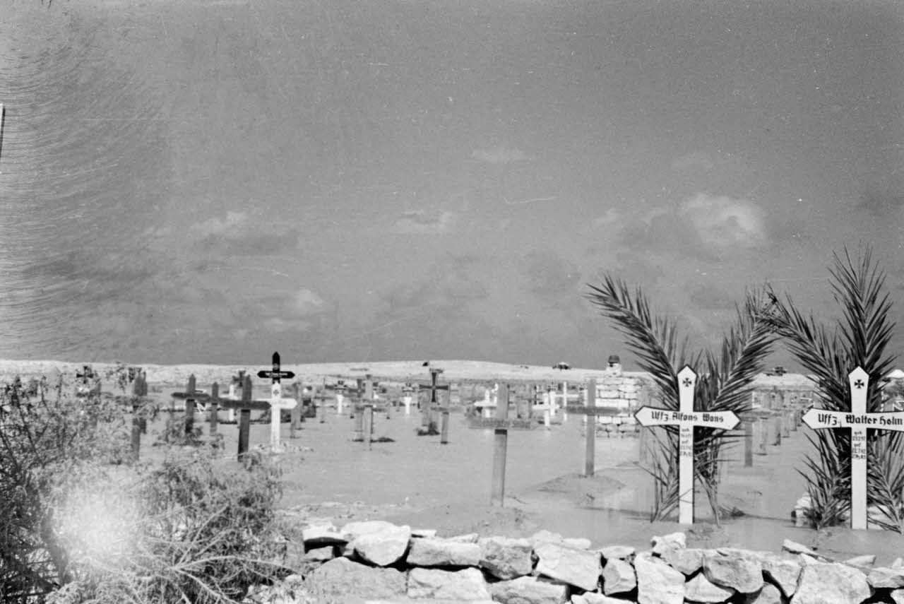 Un cimetière militaire allemand est également envahi par les eaux. Parmi les tombes, celle du sous-officier (Unteroffizier) Alfons Wons permet de situer l'emplacement actuel du cimetière à El Alamein.