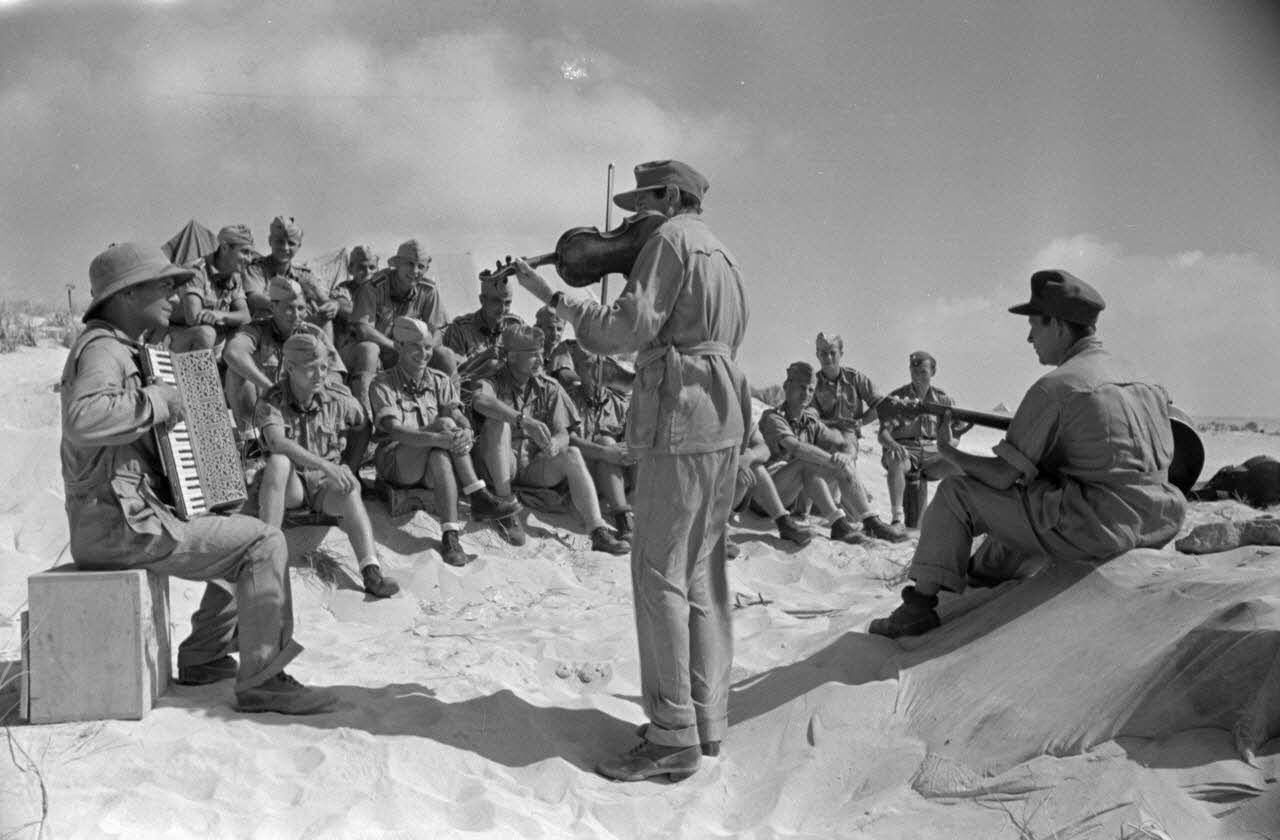 Sur une plage d'Egypte (El Quasaba), des membres de la KDF (Kraft durch Freude) jouent de la musique et chantent.