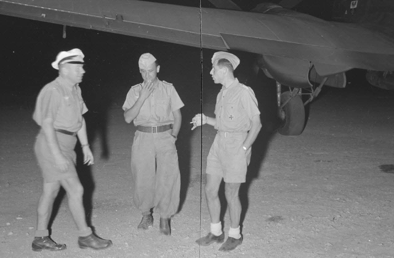 Convoi logisitique allemand sur les routes égyptiennes et le décollage nocturne d'un équipage de bombardier Heinkel He-111 pour un bombardement de l'oasis de Koufra, un caméraman fait partie de l'équipage.