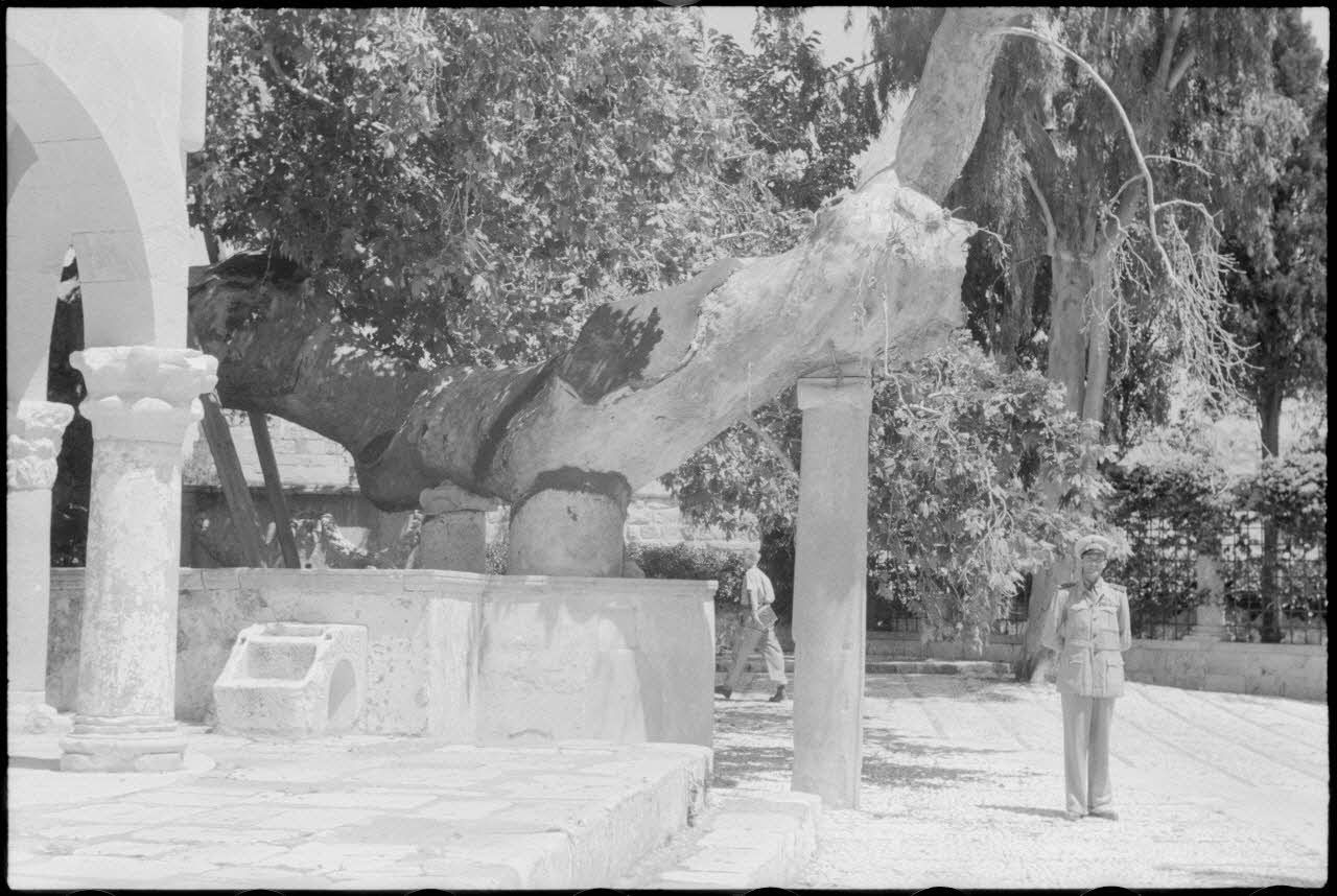 Note : L’arbre est un platane qui, selon la légende, aurait été planté par Hippocrate pour enseigner la médecine à ses élèves à l’ombre de son feuillage.