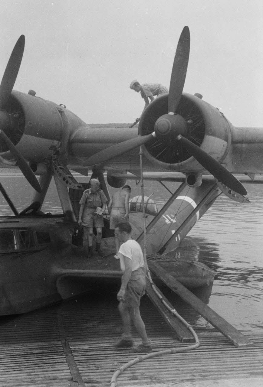 Déchargement et prise en charge de blessés par un équipage d'hydravion Dornier Do-24 du Seenotstaffel 7.