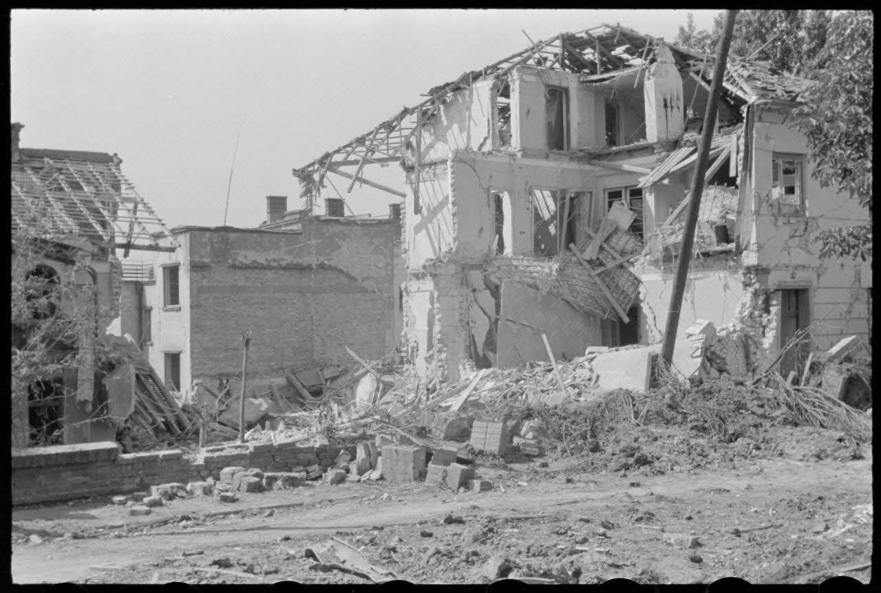 - les dégats causés par un bombardement dans une ville non identifiée, peut-être en Grèce.