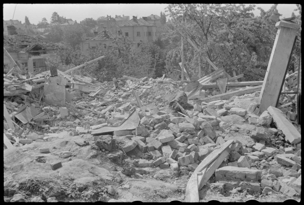 - les dégats causés par un bombardement dans une ville non identifiée, peut-être en Grèce.