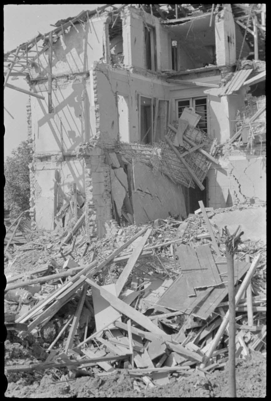 - les dégats causés par un bombardement dans une ville non identifiée, peut-être en Grèce.