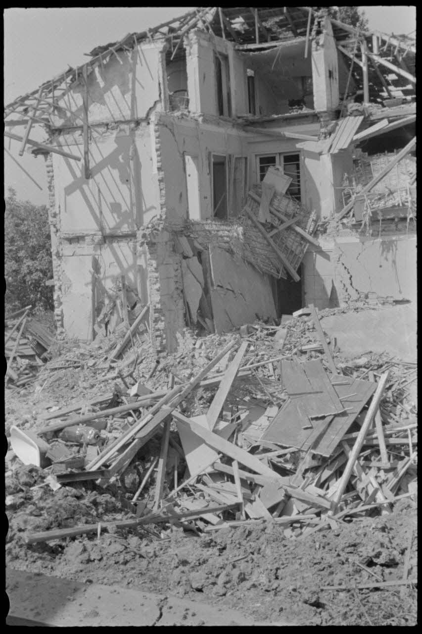 - les dégats causés par un bombardement dans une ville non identifiée, peut-être en Grèce.