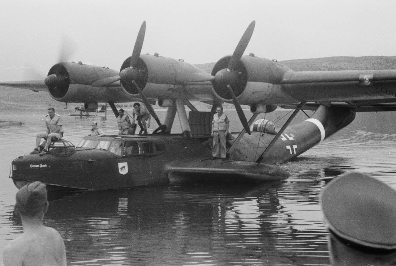 Retour d'un équipage de Dornier Do-24 de la Seenotstaffel 7 suite à une attaque de chasseurs britanniques.