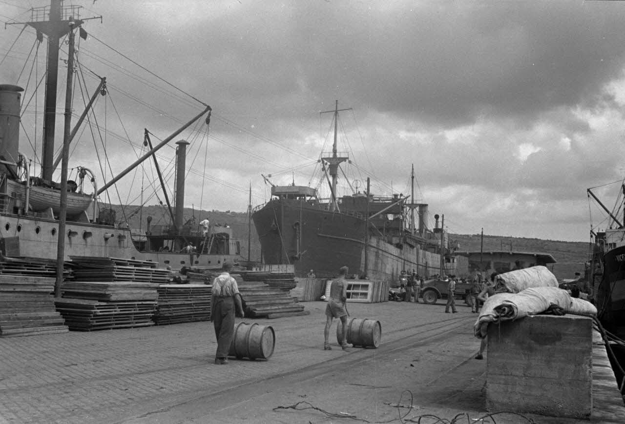 Dans un port de la baie de la Sude (Souda, Crète), des unités de reconnaissance de l'armée de l'Air allemande et une vedette rapide de la 3e Flotille.