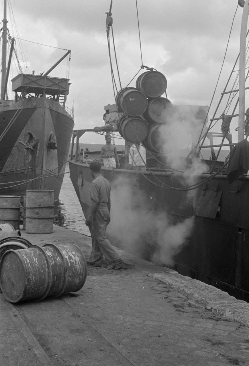 Dans la baie de la Sude (Souda Bay), le déchargement de carburant depuis les cales du cargo espagnole "Vicente".