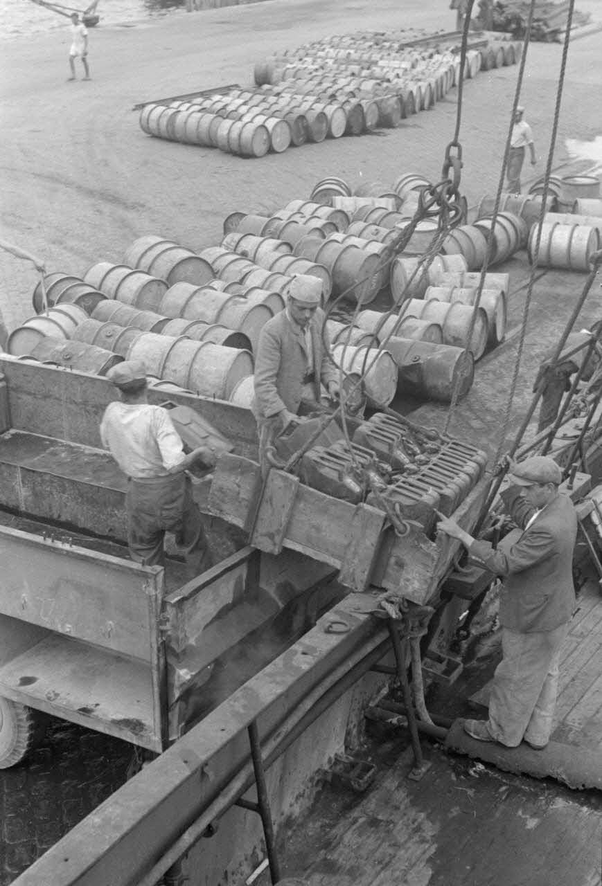 Dans la baie de la Sude (Souda Bay), le déchargement de carburant depuis les cales du cargo espagnole "Vicente".
