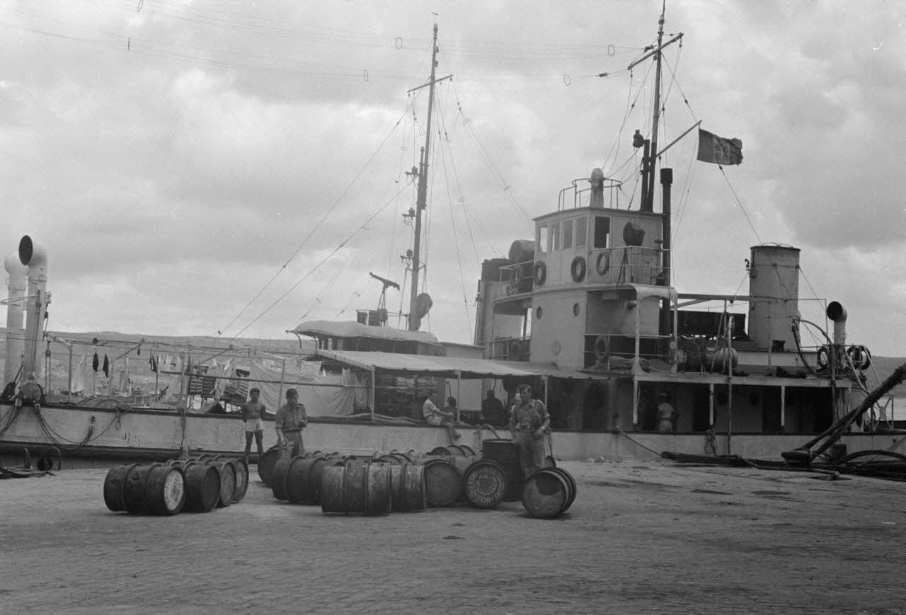 Dans la baie de la Sude (Souda Bay), le déchargement de carburant depuis les cales du cargo espagnole "Vicente".