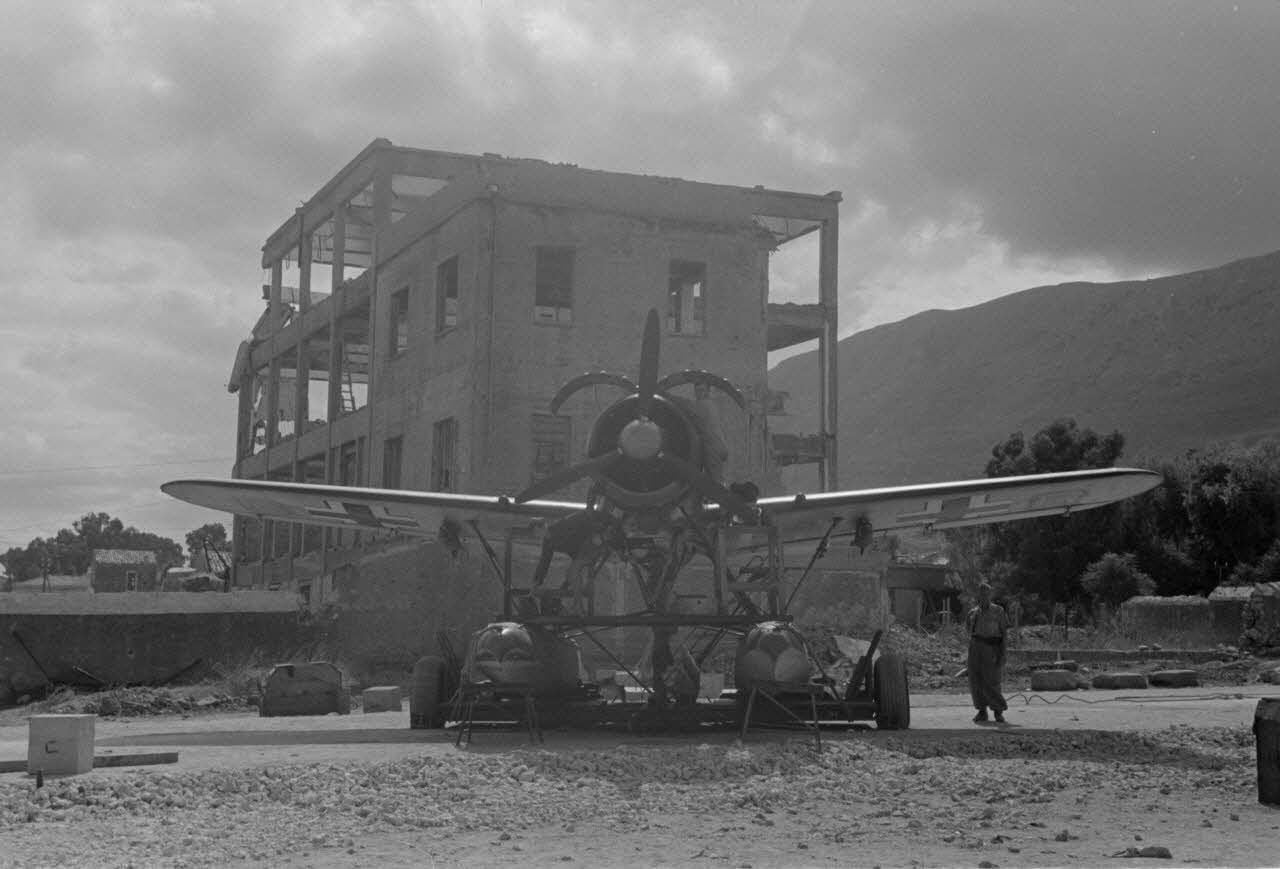 Un Dornier Do-24 et un hydravion Junkers W-34 d'une unité côtière non-identifiée de l'armée de l'Air allemande. Des mécaniciens effectuent une maintenance sur des Arado Ar-196 du 126e groupe de reconnaissance (Aufklärungsgruppe 126). On remarque l'immatriculation de l'Arado D1+ GI. Dans un port, la vedette de la Luftwaffe imamtriculée FL.B.435 Flugsicherungsboot (DAM 1436 L11). Dans un port, des futs et des jerrycans sont déchargés d'un cargo. La carcasse d'un bombardier Junkers Ju-88 du 121e groupe de reconnaissance (Aufklärungsgruppe (F)121) immatriculé 7A+BH (DAM 1436 L23 et L24). La carcasse d'un hydravion Arado Ar-196 a été déchargé du cargo. On remarque le début de l''immatriculation "D1" qui identifie les avions du 126e groupe de reconnaissance. Une vedette rapide (Schnellboot) de la 3e Flotille dont on aperçoit l'insigne qui semble être un crocodile (DAM 1436 L29 à L30).