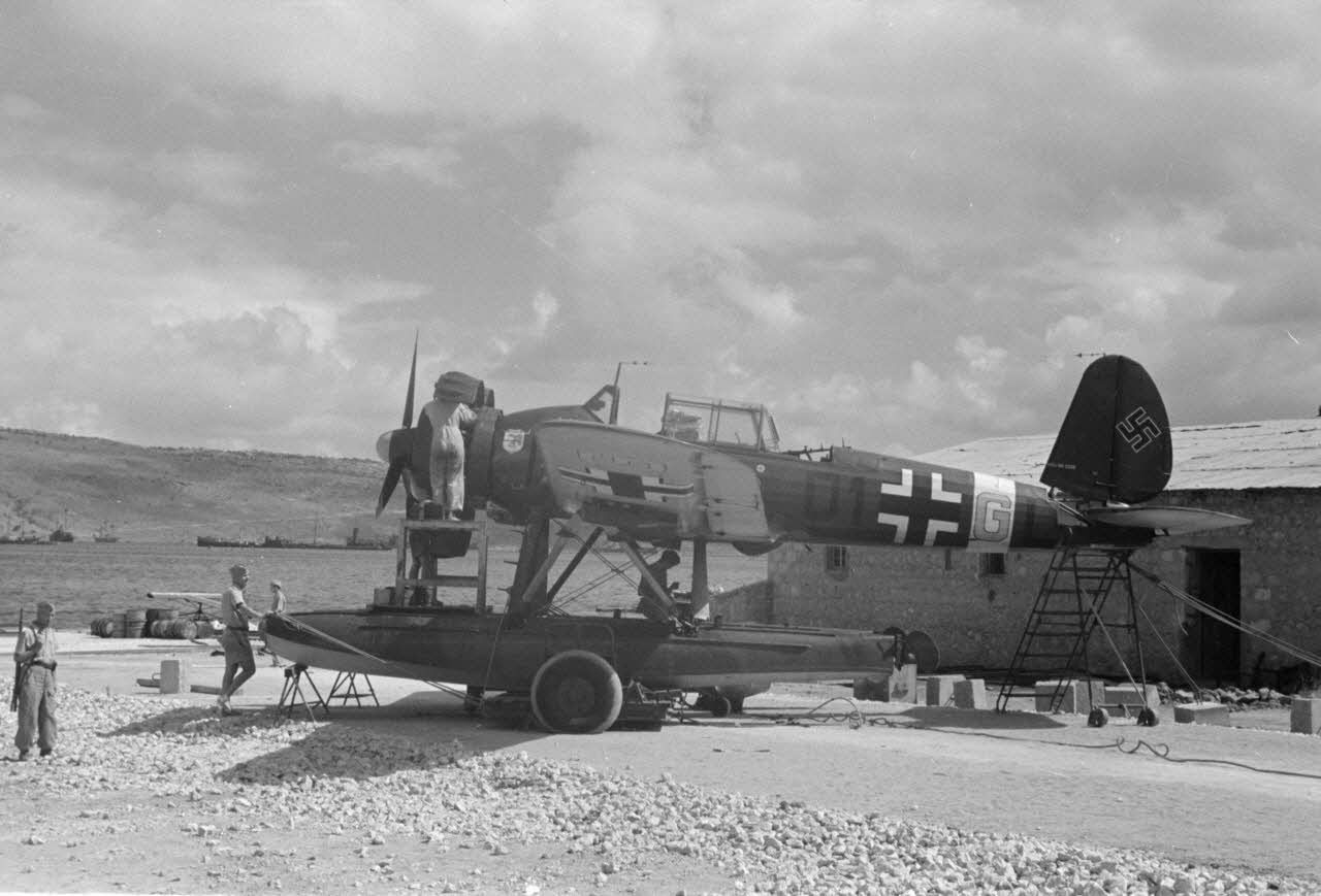 La maintenance d'un hydravion Arado Ar-196 immatriculé D1+GL du Aufklärungsgruppe.126.