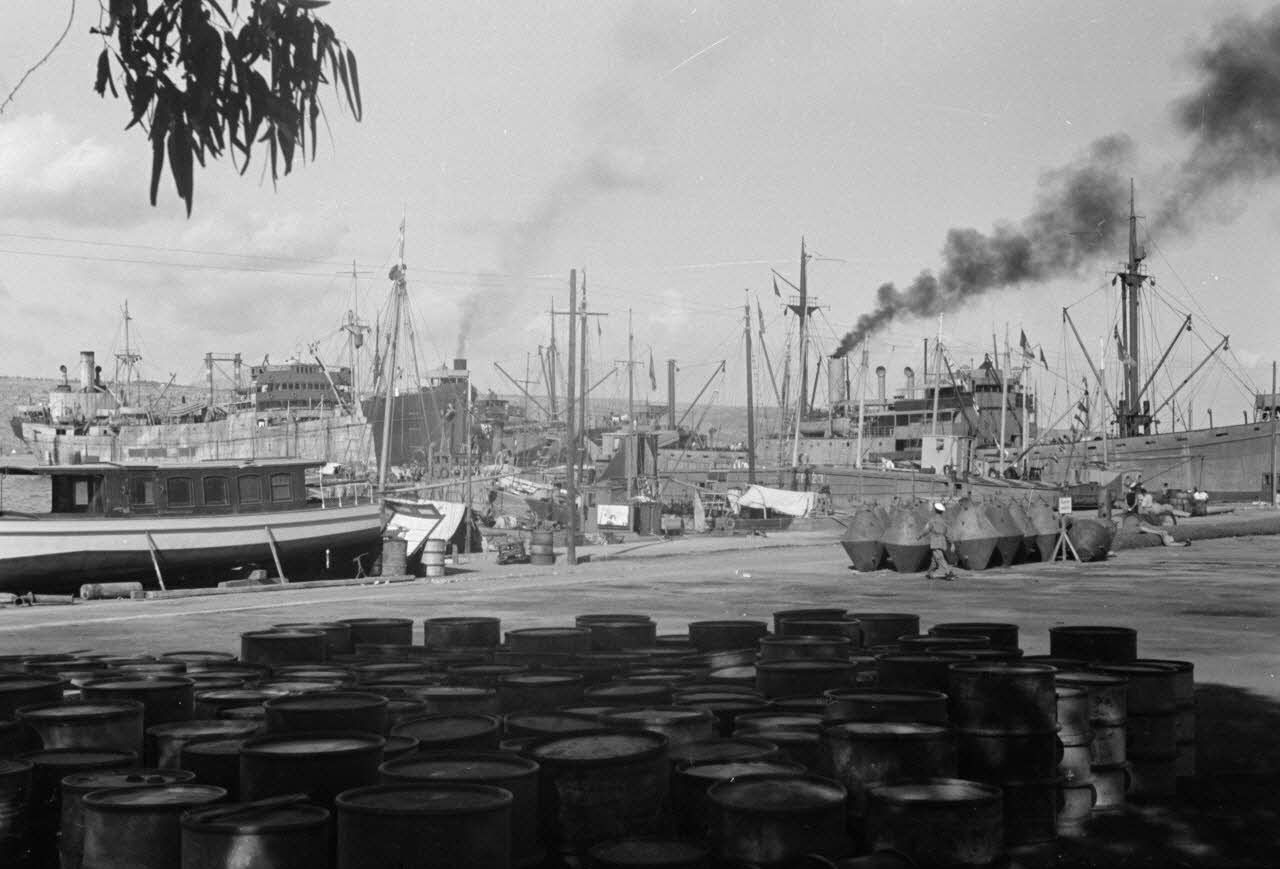 Ravitaillement en carburant dans un port de la baie de la Sude (Suda Bay).