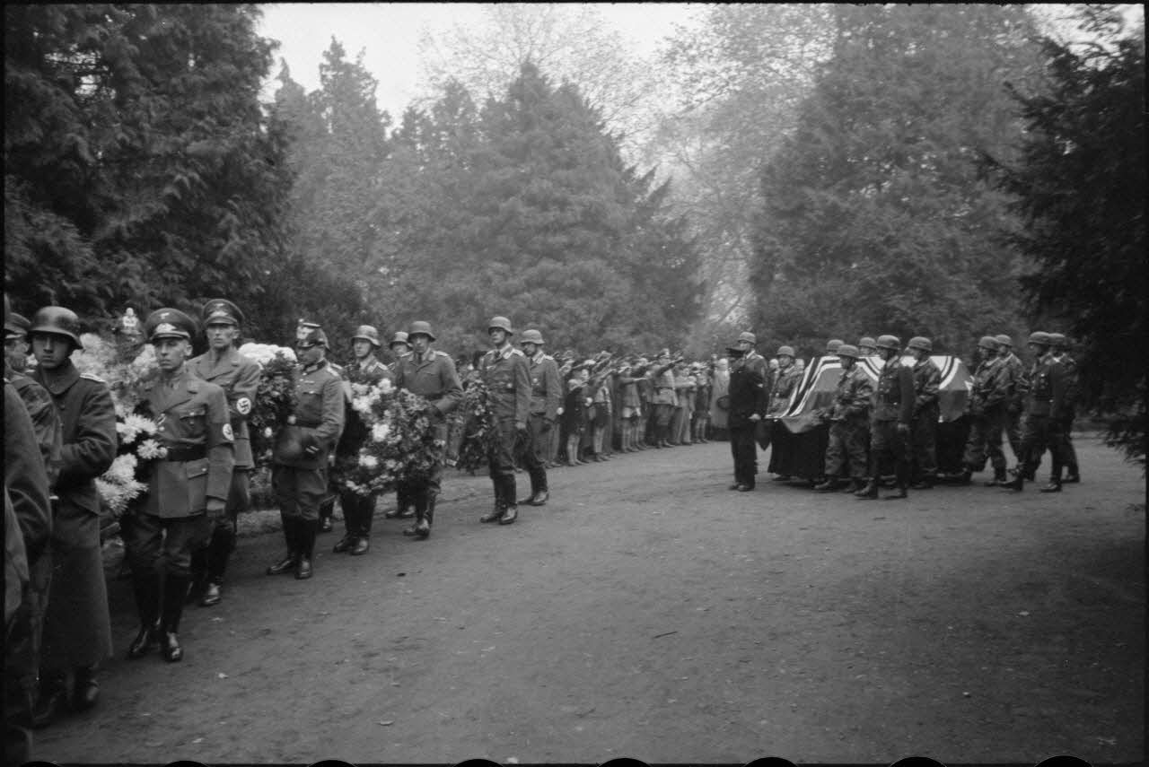 A Bonn, lors des obsèques du lieutenant-colonel Walter Koch, les différentes couronnes sont portées par des soldats, policiers ou membres locaux du parti national socialiste.