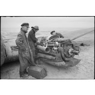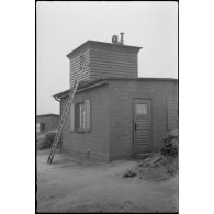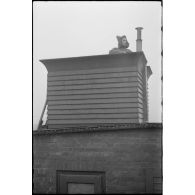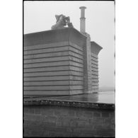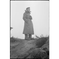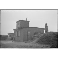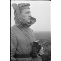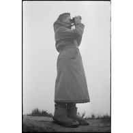 Un soldat de l'artillerie de marine scrute l'horizon avec ses jumelles dans un poste d'observation…