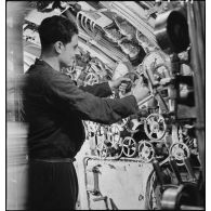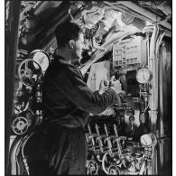 Sous-marinier de quart manoeuvrant une vanne, au…