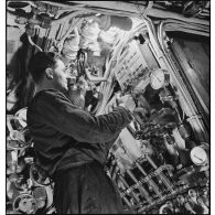 Sous-marinier de quart manoeuvrant, au cours d'un…