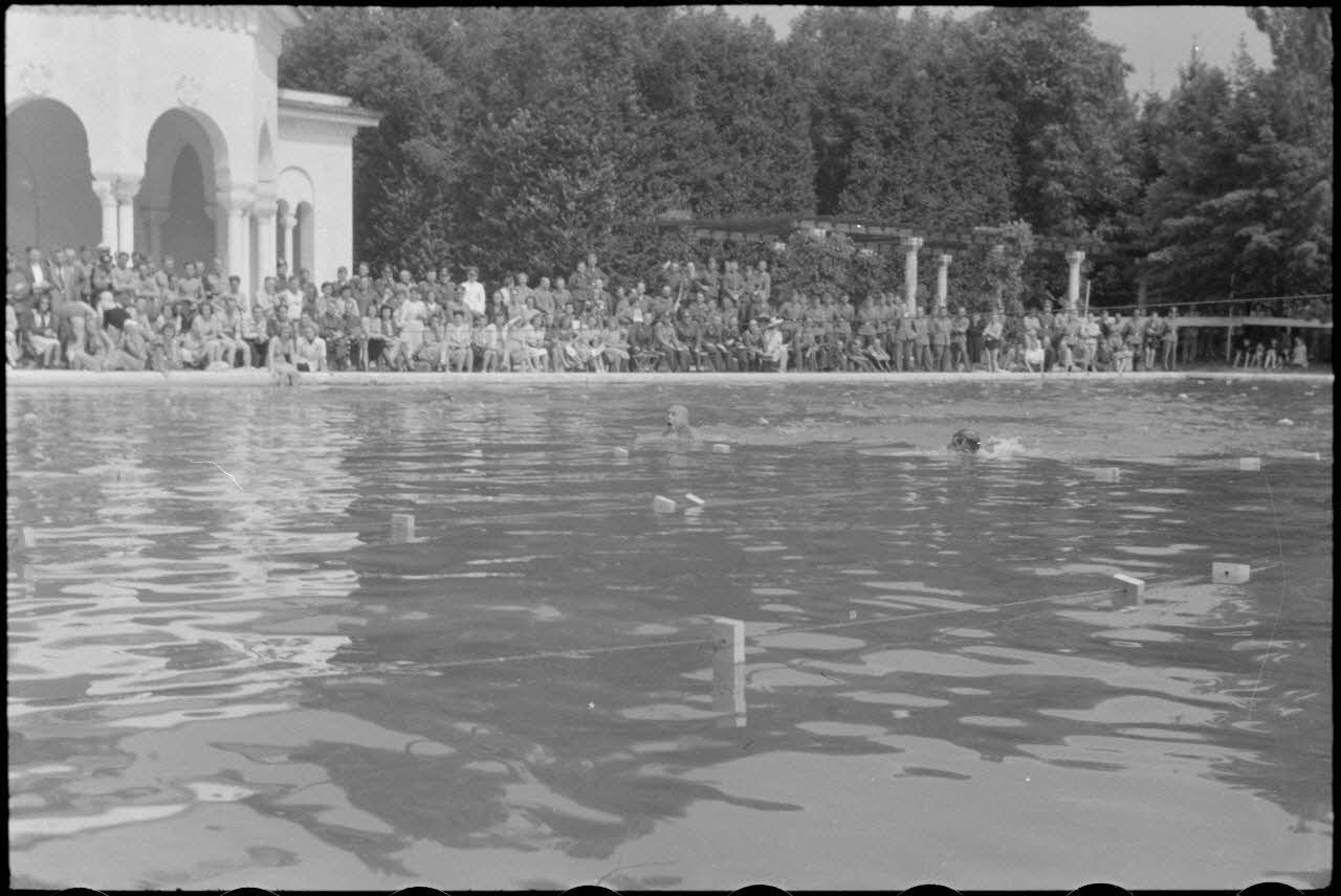 A Belgrade, un public nombreux est venu assister à des épreuves de natation (Schwimmfest).