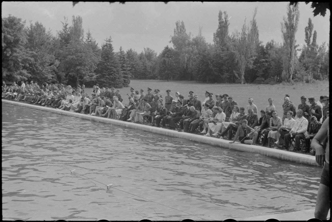A Belgrade, un public nombreux est venu assister à des épreuves de natation (Schwimmfest).