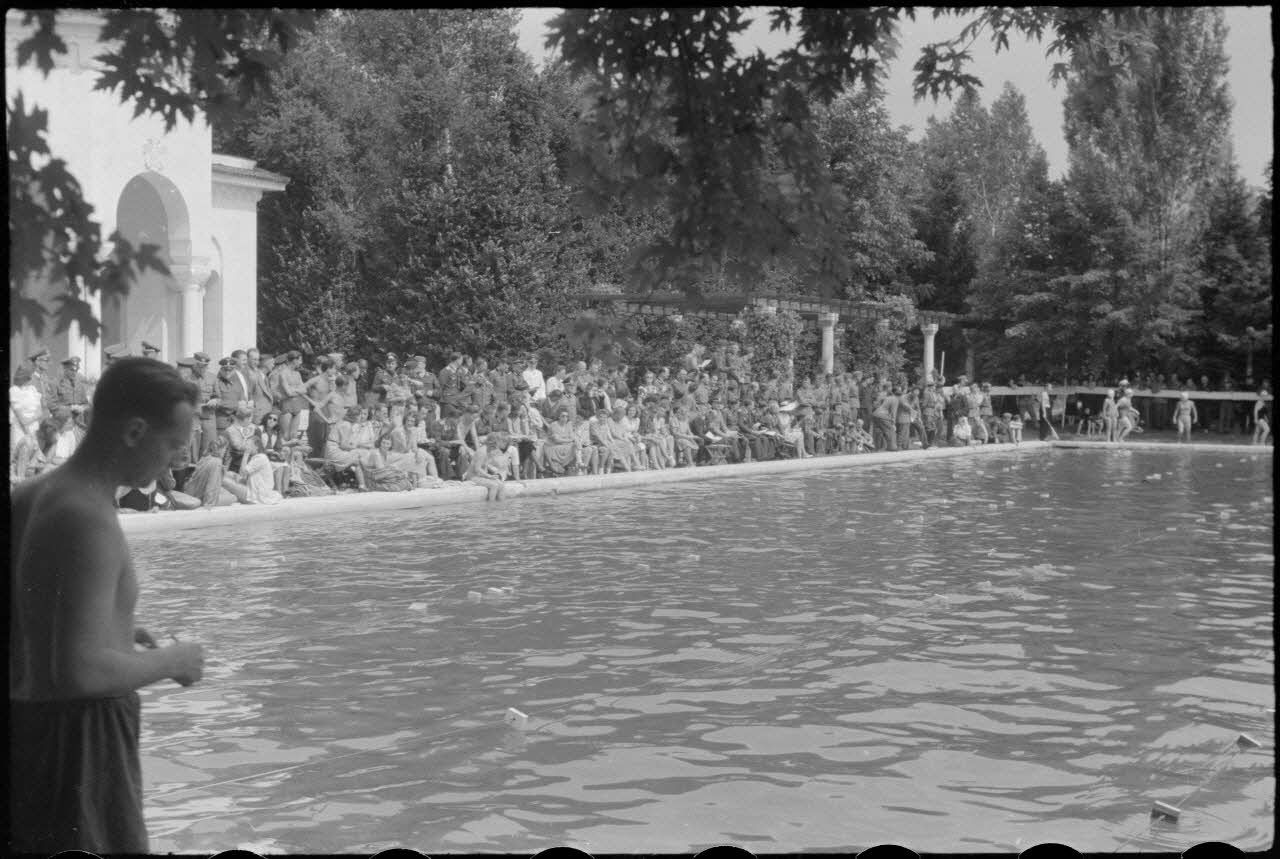 A Belgrade, un public nombreux est venu assister à des épreuves de natation (Schwimmfest).
