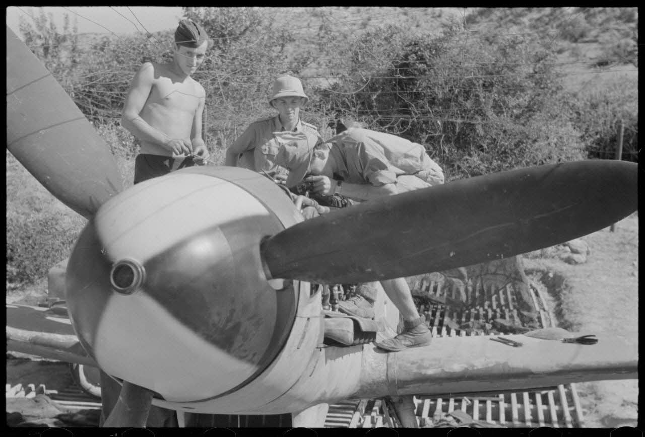 A Mostar, la maintenance d'un moteur de Messerschmitt Bf-109 et portraits de l'Oberleutnant Heimo Emmerstorfer, I./NAGr. 12.