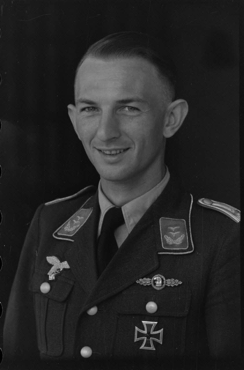 Le lieutenant (Oberleutnant) Heimo Emmerstorfer, I./NAGr. 12 (Nahaufklärungsgruppe 12). On remarque sa bande de bras (Armelband) "Tannenberg" issu du Aufklärungsgruppe 10.