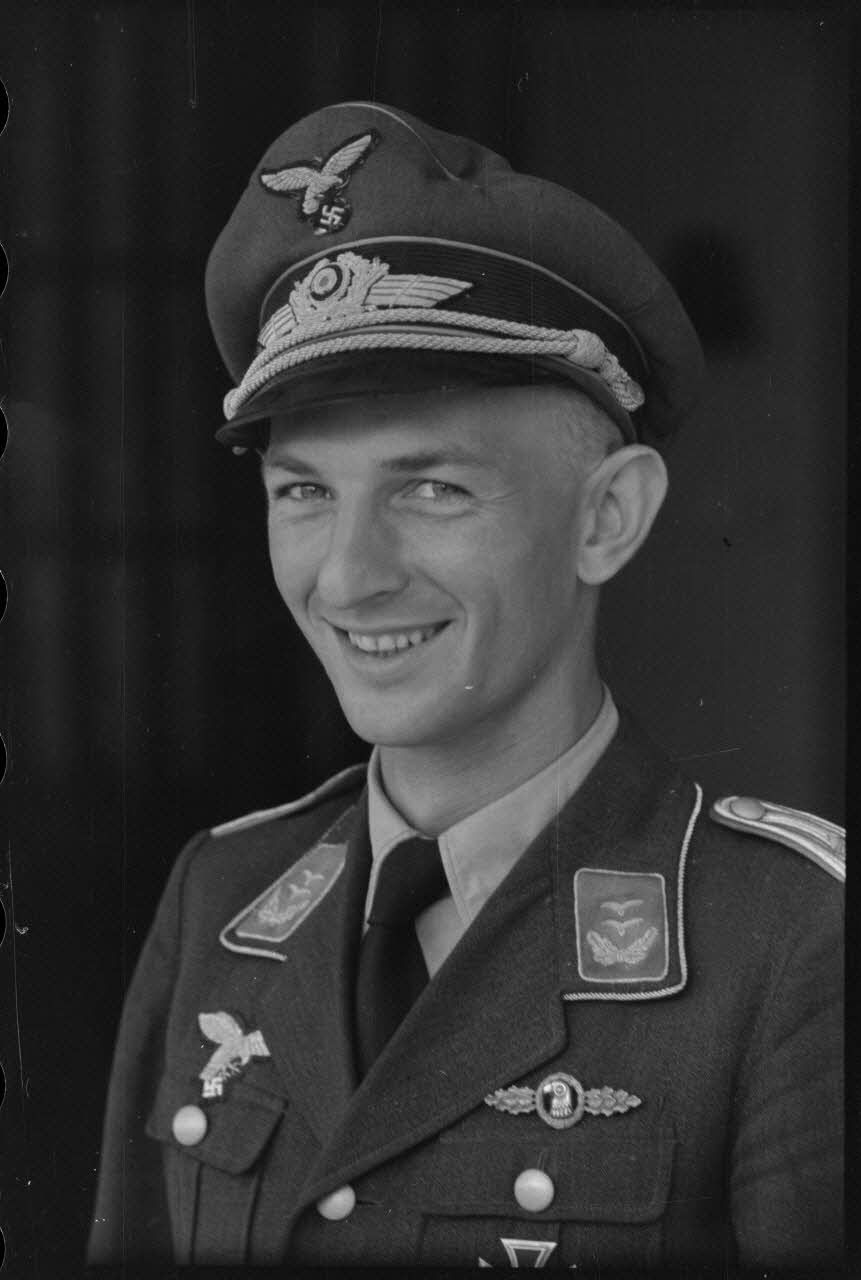 Le lieutenant (Oberleutnant) Heimo Emmerstorfer, I./NAGr. 12 (Nahaufklärungsgruppe 12). On remarque sa bande de bras (Armelband) "Tannenberg" issu du Aufklärungsgruppe 10.