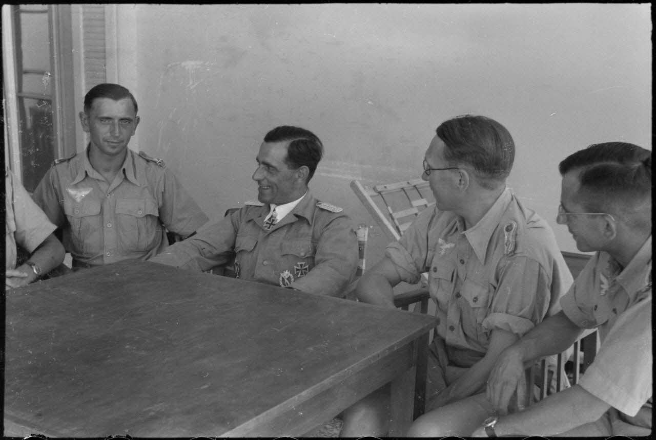 Le Major Schüler salue des hommes, le dernier est un Sonderführer (Z) d'une compagnie de propagande, il pourrait s'agir du photographe Werner Bockelmann (clichés L36 et L37).