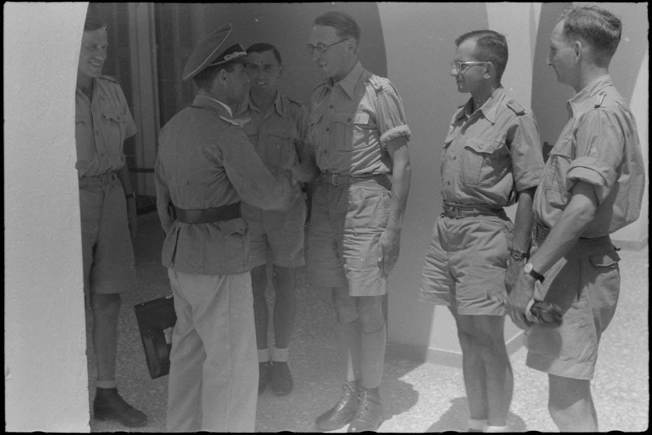 Le Major Schüler salue des hommes, le dernier est un Sonderführer (Z) d'une compagnie de propagande, il pourrait s'agir du photographe Werner Bockelmann (clichés L36 et L37).