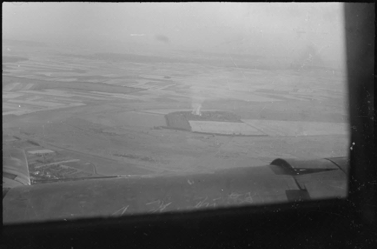 Vue aérienne d'un combat contre des résistants locaux, photographié depuis un bombardier Junkers Ju-88.