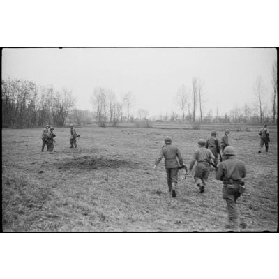 Une patrouille de fantassins américains à l'est de Sélestat.