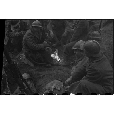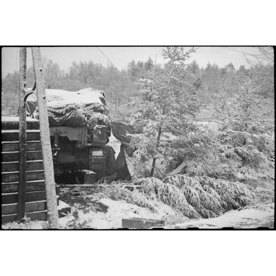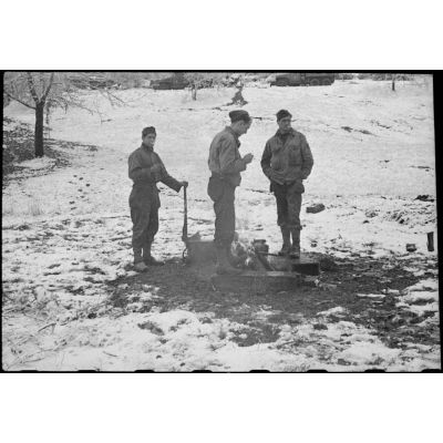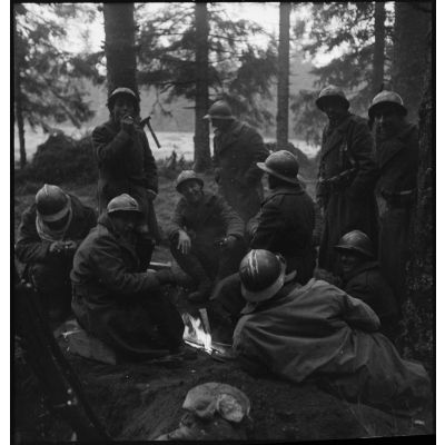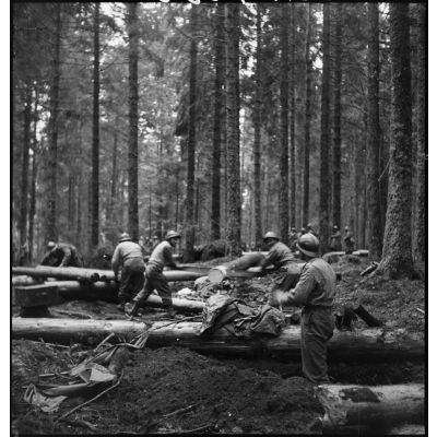 Bivouac de soldats de la 3e division d'infanterie algérienne (3e DIA) en forêt vosgienne.
