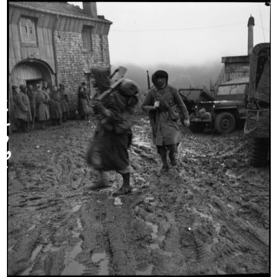 Hommes de la 3e DIA (division d'infanterie algérienne) lors de la progression de l'unité vers Rochesson entre le 3 et le 5 novembre 1944.
