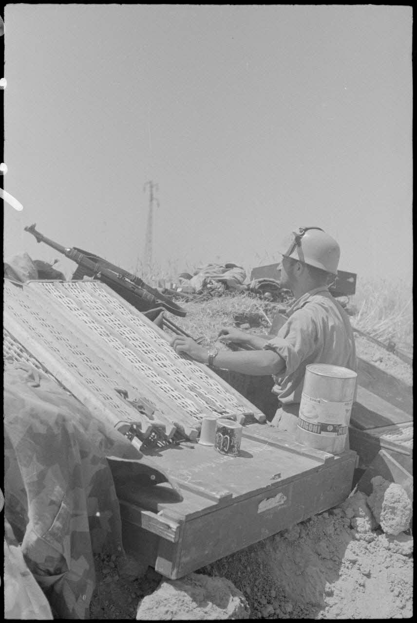 Après cette dernière offensive, les troupes allemandes "soufflent ". Les parachutistes de la 1.Fallschirmjäger reçoivent des vivres (boîtes de conserve, cigarettes et pain noir). Un sous-officier fait la distribution aux hommes.