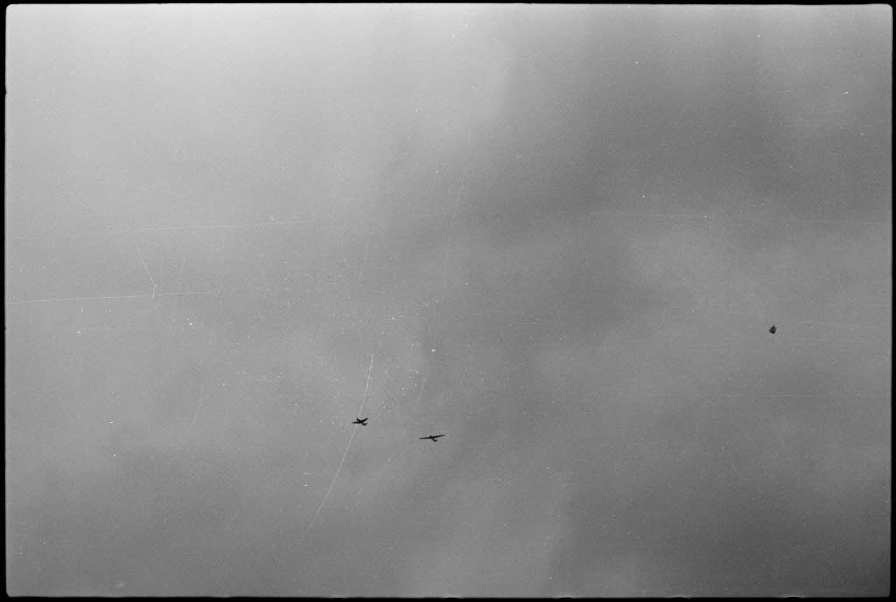 Lors d'un exercice aéroporté sur un aérodrome norvégien, un planeur DFS-230 descend en piqué.