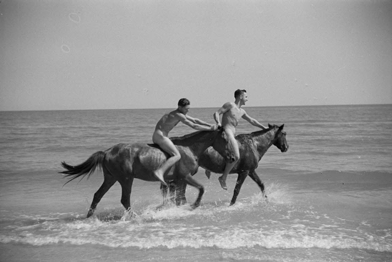 A proximité du terrain de Mamaia, des pilotes roumains du Grupul 9 sur une plage de la Mer Noire.