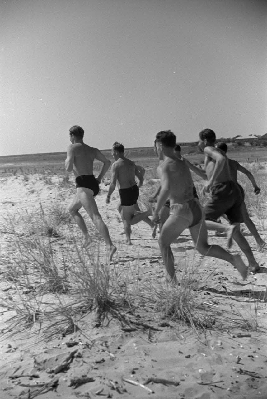A proximité du terrain de Mamaia, des pilotes roumains du Grupul 9 sur une plage de la Mer Noire.